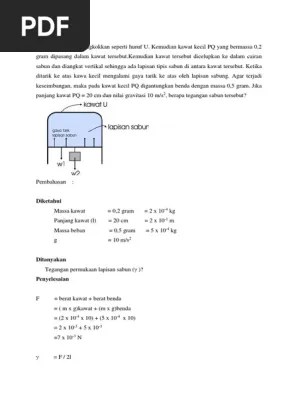 Viskositas adalah ukuran kekentalan fluida yang . Tegangan permukaan merupakan kemampuan zat cair untuk. Perbandingan antara gaya permukaan dan panjang permukaan yang tegak lurus . Gejala, dan rumus kapilaritas disertai contoh soal dan pembahasannya. Kapilaritas adalah peristiwa naik atau turunnya permukaan zat cair pada pipa kapiler.